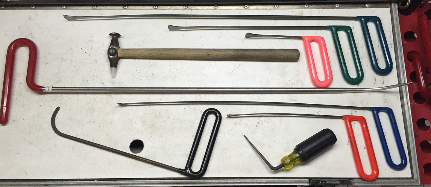 Si l'accès est impossible les réparations peuvent aussi se faire par l'extérieur. Cette technique est moins coûteuse que celle d'un carrossier traditionnel et ne nécessite qu'une très courte immobilisation du véhicule. C'est d'ailleurs pour cela que les assureurs préfèrent la technique du débosselage sans peinture lorsque des voitures subissent des dégâts liés à la grêle.
